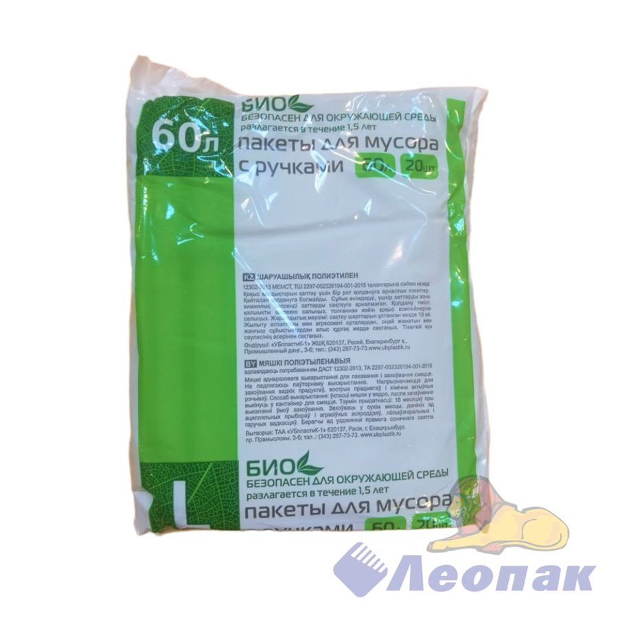 60 л · С ручками · 20 шт./упаковка · 40 уп./транспортная упаковка · Бренд: УбПластик