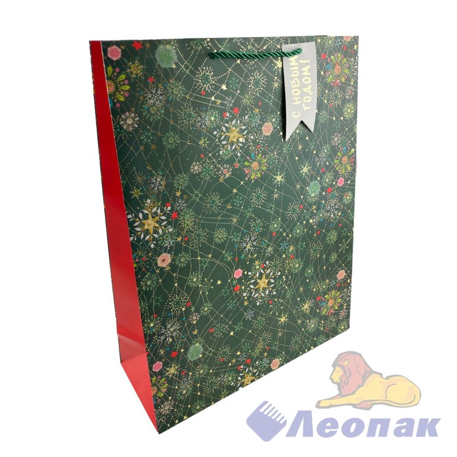 🎄 Пакет новогодний люкс 32×41×12 (N1070) – стильная и вместительная упаковка для средних и крупных подарков.